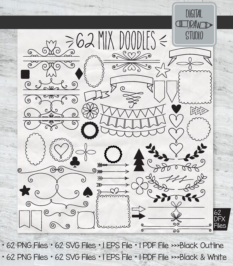 62 Mix Decorative Elements Clip Art Hand Drawn Frames Etsy