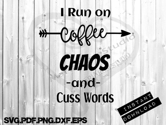 I Run On Coffee Chaos And Cuss Words Svg Cutting Files Png Etsy
