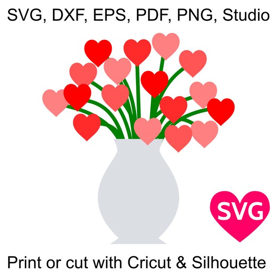 Bouquet Of Heart Flowers Svg File For Cricut Silhouette Etsy