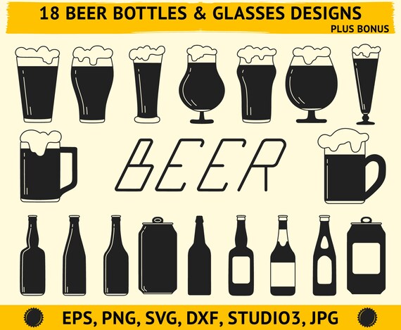 Beer Bottle Svg Beer Glass Svg Png Dxf Studio3 Eps Etsy