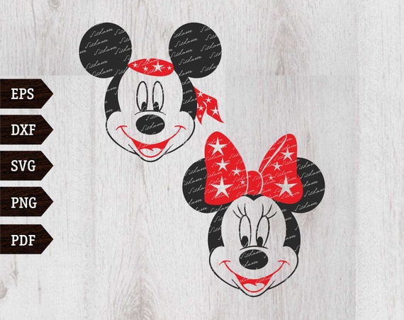 Svg Dxf File For Pirate Mickey And Minnie With Bandana Etsy