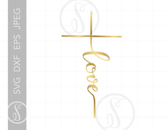 Gold Love Script Cross Svg Print And Cut Files Clipart Etsy