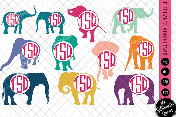 Elephant Monogram Svg Dxf Eps Png Digital Cutting Design Etsy