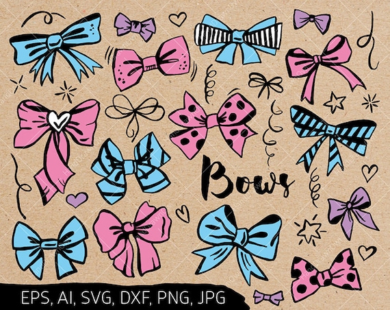 Bows Svgs 7 Shapes Included Ribbons Cut File Bow Outlines Etsy